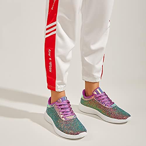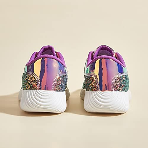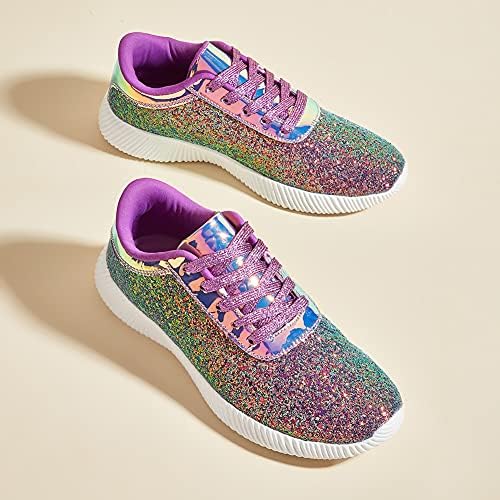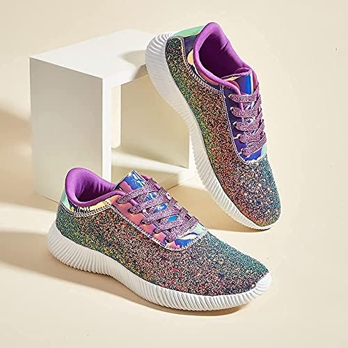 Shiny glitter upper(Not easy to fall off)+Rubber soft non-slip soles+High elastic insole+High friction shoelaces.Super stylish appearance, especially the glitter upper, make you shine from different angles. Super light weight and soft shoe interior, provide you comfortable feeling all day long.