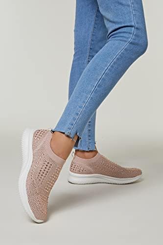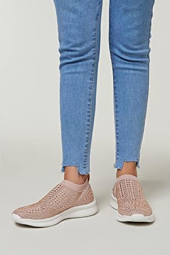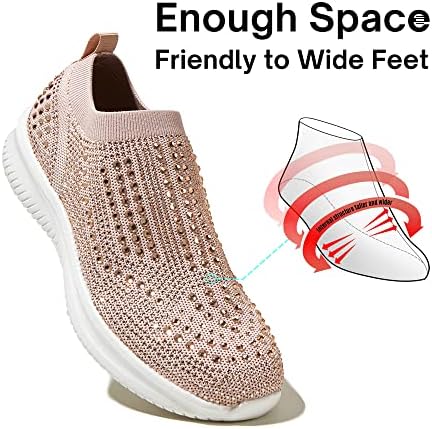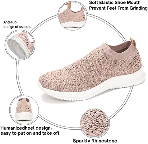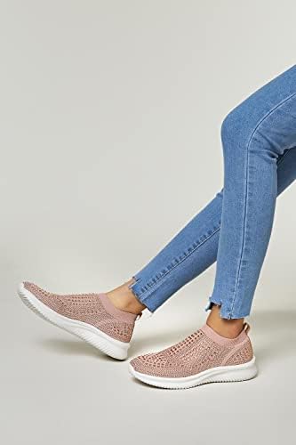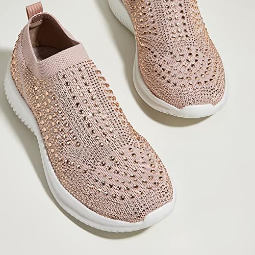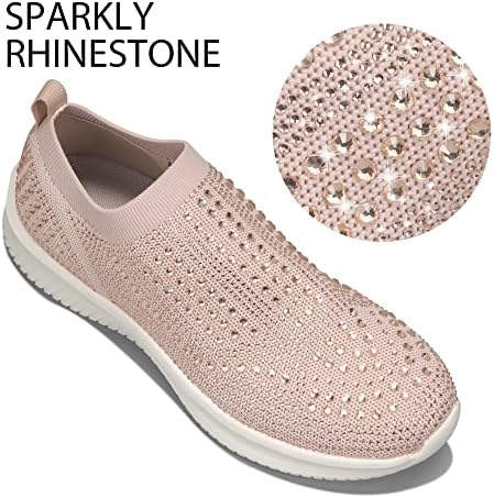 BELOS Women’s Rhinestone Mesh Slip On Walking Shoes Fashion Breathable Spakle Glitter Sneaker