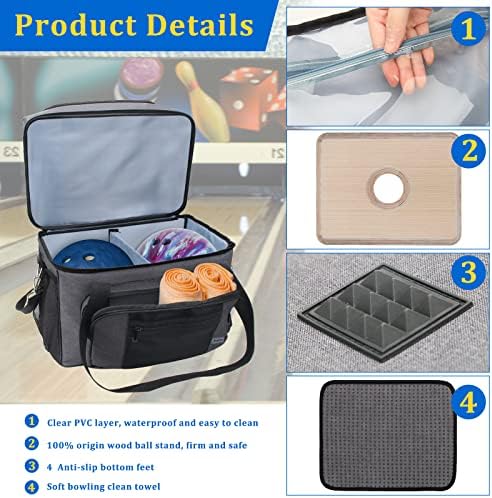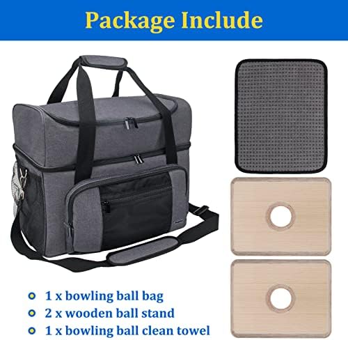 【Package Include】: The package includes 1 x 2 ball bowling carry bag, 2 x wooden ball stand, 1 x ball clean towel, ball stand could make sure the ball could keep stablize when transportation, and the towel could clean the bowling ball.