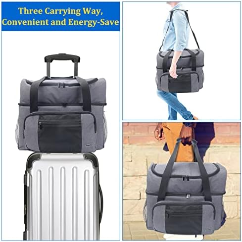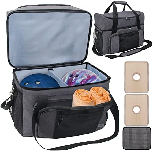 Boyistar Double Layer Bowling Ball Bag 2 Ball, Extra Large Bowling Tote Bag for Bowling Ball Carrying Case Fit 1 Pair Men Size 16 Bowling Shoes, Bowling Bag with 2 Wood Ball Stands, Ball Clean Towel