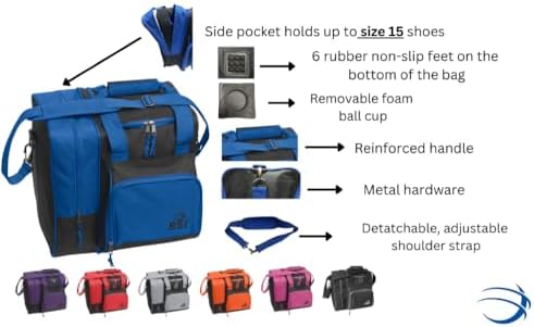Heavy Duty Ramie/Poly Fabric Removable Foam Ball Cup Separate Side Shoe Compartment – Holds Up To Size 14 Detachable/Adjustable Shoulder Strap Zippered Personal Organizer Pocket Reinforced Handles Metal Hardware