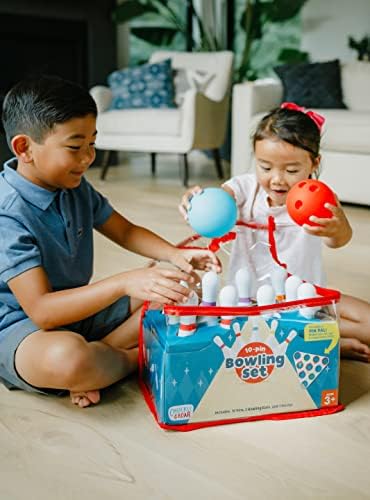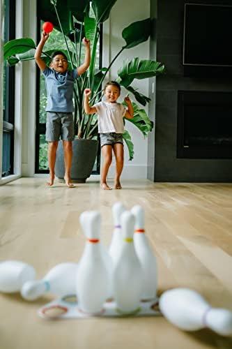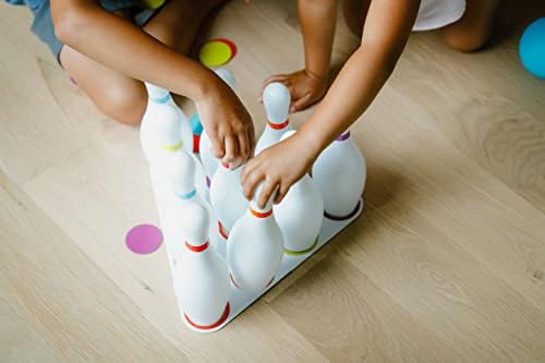 This 10-Pin Kids Bowling Set is sure to bowl you over! The Pin Pal that’s included makes set up a snap every time. Just lay it down on a flat surface and place pins in their respective places. You’ll learn colors and numbers as you place them according to the color code, making Bowling a fun learning activity for kids.Now that they’re set up it’s time to knock ’em down. Let’s bowl! This 10-Pin Bowling Set provides a great active game for kids. Once they start they won’t want to stop until they’ve mastered their craft. Get on a roll!
