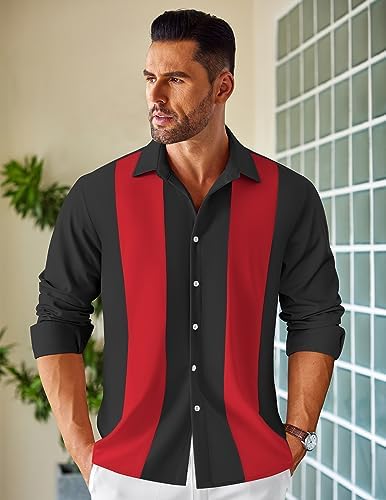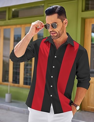 COOFANDY Men’s Vintage Bowling Shirt 50s Retro Style