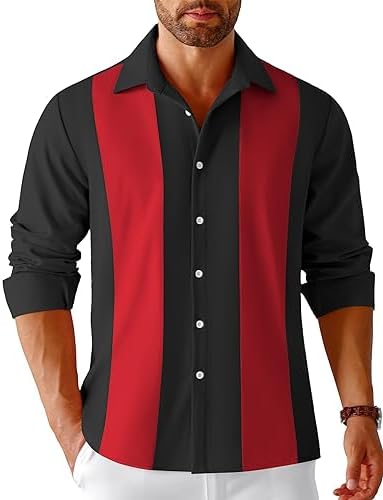 COOFANDY Men’s Rockabilly Shirts Holiday Colorblock Striped Top