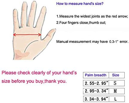 3 sizes available, Size S for palm breadth of 2.55-2.95″, Size M for palm breadth of 2.95-3.34″, Size L for palm breadth of 3.34-3.94″.