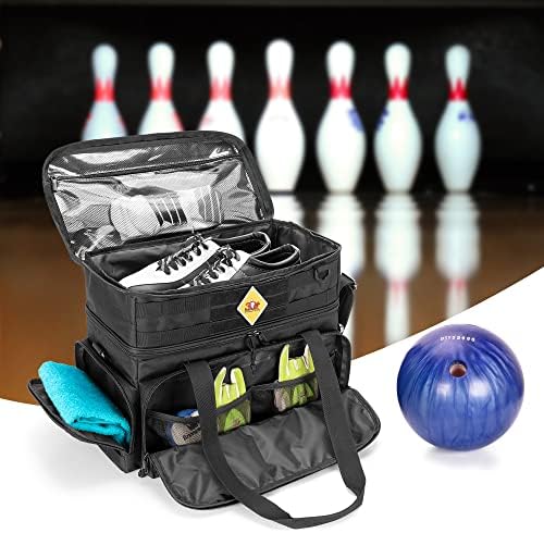 SEPARATE SHOE SPACE: Top shoes compartment can hold a pair of bowling shoes up to size 16 US Mens, and the inner transparent PVC is convenient for you to clean stains. The zippered pocket of shoe space can hold your towel or clothes.