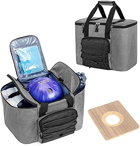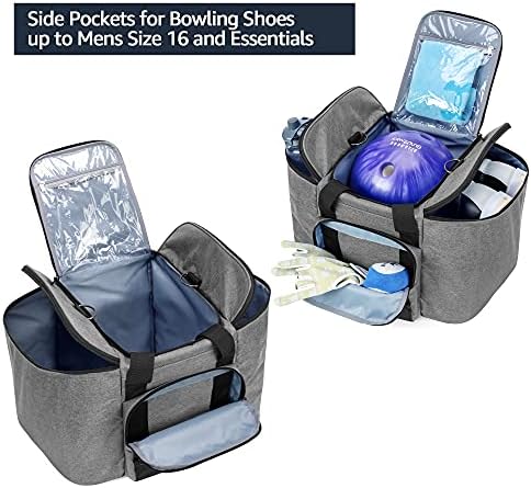 DSLEAF Bowling Ball Bag for Single Ball, Bowling Ball Tote Bag with Wooden Ball Holder and Extra Storage Pockets – Holds Bowling Shoes Up to Mens Size 16