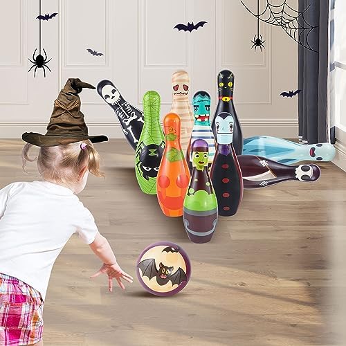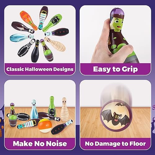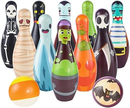 Premium Quality:Made of high quality soft foam material, non-toxic with smooth edge, safe for all ages use, which will not scratch or damage floor and make no sound.Our halloween bowling toys for kids meets USA toy safety requirements, you can buy it with confidence.Any issue about your purchase, please be free to contact us!