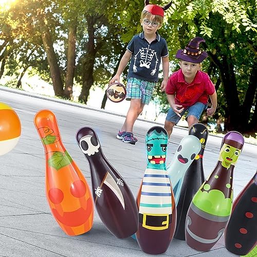 Endless Fun:This halloween party games for kids not only allow you to create an authentic bowling alley-grade experience at your home, but also great to have a competition with your friends or family outdoors.The halloween toy set helps kids develop fine motor skills, social skills, eye-hand coordination while dropping foam pins!