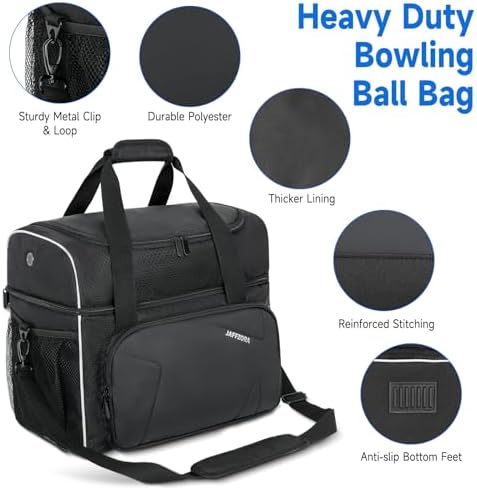 【Easy to Carry】: The bowling tote features an adjustable shoulder strap to reduce stress for your shoulder, and cushioned handle with Velcro ensures you to carry the bowling balls bag comfortable. The 4 non-slip feet at the bottom will keep the balls bag stability.