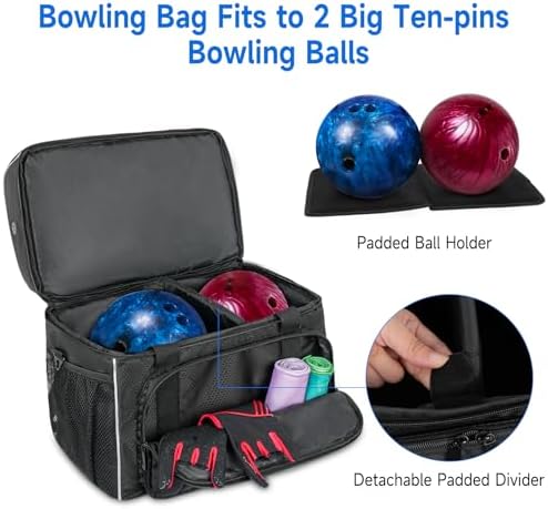 【Removable Padded Cushion】: The removable design can help you use the space widely and make your items well-organized, help you carry up 2 bowling balls easiy. This bowling bag is also with a ball holder, which can protect your bowling balls from damage and keep from rolling.