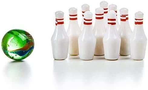 Complete Miniature Bowling Set: Get everything you need to bowl a perfect game with Kicko’s miniature bowling set. With 10 pins and a marble bowling ball, perfect for small spaces and quick games.