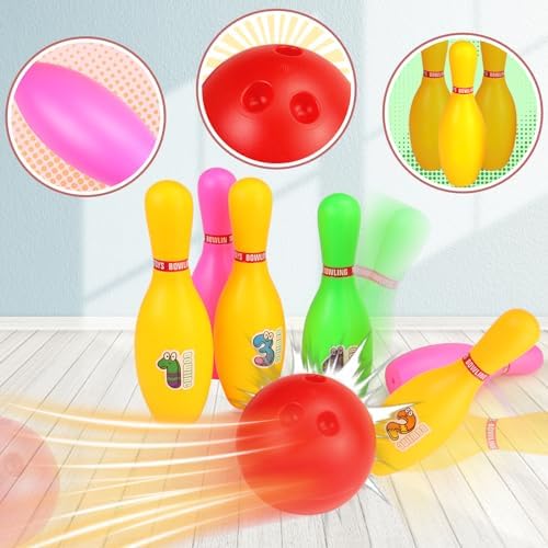 đłăPremium Plastic MaterialăBowling pins are made of high-quality plastic and springs back quickly even when dented, perfect for outdoor activities and indoor play for kids aged 8-12. Crafted from durable materials, these bowling pins are designed to withstand impact, ensuring they won’t easily break or get damaged even after repeated use.