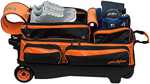The new Konvoy Triple Roller bag is ideal for tournament bowlers with the capacity to hold up to three balls. With the large accessory pocket, you will be able to store everything from gloves and tape to towels and shammy pads. USA made KRuze wheel provide a smooth ride; your opponents won’t even know you’re coming. Color: Orange/Black Separate shoe compartment holds up to size 15 shoes Retractable square locking handle extends to 43″ Large accessory pockets on front and side 5″ Smooth Kruze urethane wheeles with steel bearings offer an ultra smooth quiet ride 840D/600D fabric Dimensions: 13″ W x 17″ D x 31″ H Warranty: 5-Year Limited Manufacturer’s Warranty
