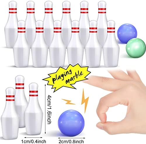 Proper Measurement: each of these bowling pins for kids measures about 3.9 cm/ 1.54 inches in height and 1.5 cm/ 0.59 inches in width, with a weight of 3.2 g, appropriate size for you to enjoy the game; The crystal bowling ball is about 2.5 cm/ 0.98 inches, matching the bowling pins well for a lot of fun