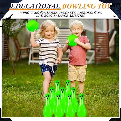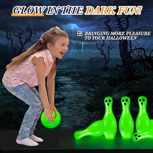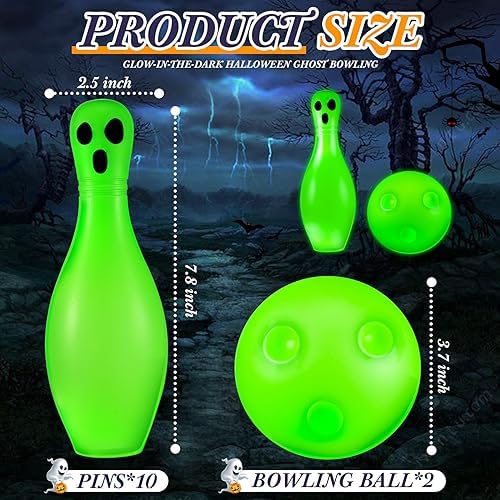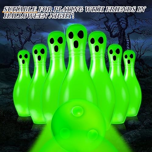 Suitable Halloween Toys: with distinctive glowing design, the plastic bowling pins have a luminous effect that can be seen even in pitch black nights, making them suitable for playing with friends in Halloween night