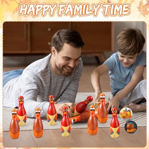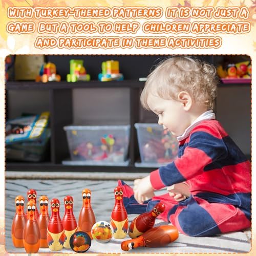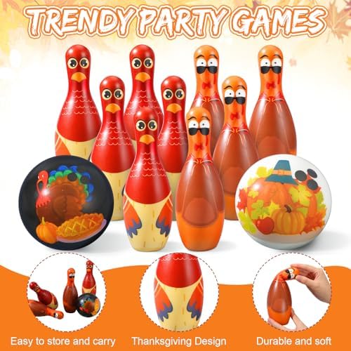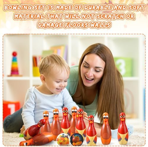 Thanksgiving Style Design: our bowling pin and ball are styled in a Thanksgiving theme with appearance of turkey, bringing indoor family games to another level of fun and festivity; This Thanksgiving style design stands out, adding happiness to holiday gatherings, and making your holiday moments more memorable with this foam bowling set
