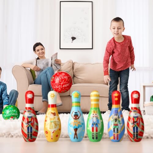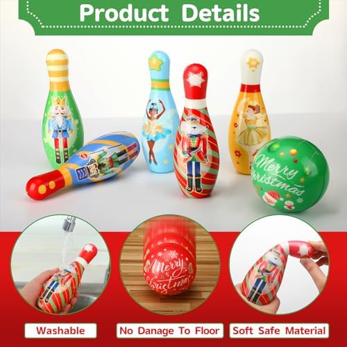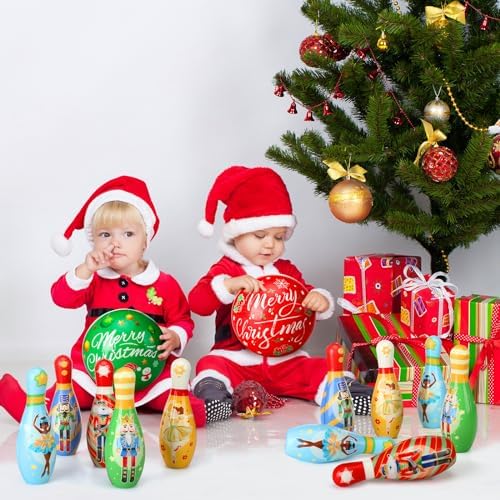 Quality Material: our toddler Christmas bowling set is designed with solid cotton, PU material, soft and lightweight, bright colors, appropriate size and weight, even if it hits people, it will not feel pain, suitable for girl boy kids toddler children outdoor indoor