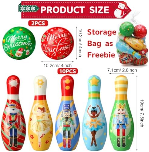 Size Information: the height of a single bowling ball bottle is about 7.5 inches/19 cm, the width is about 2.8 inches/7.1 cm, and the diameter of 2 balls is about 4 inches/10.2 cm; The nutcracker bowling set will give you lots of fun at your Christmas party