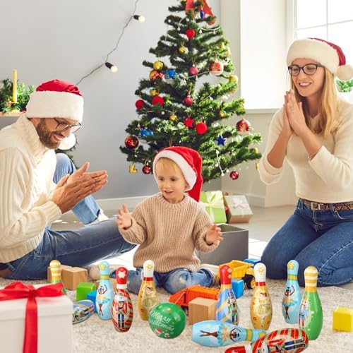 Fun Bowling Games For Kids: this Christmas bowling set helps kids learn how to bowl, improve communication skills, and build closer relationships with family and friends; Whether indoors or outdoors, it can bring joy to children; Standing up and grouping together, watching the ball roll towards them and knocking them down can turn this game into a competition; This fun bowling game helps kids develop gross motor skills, balance, and hand and eye coordination