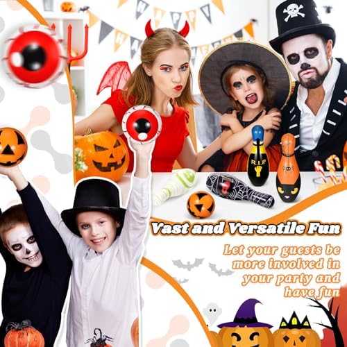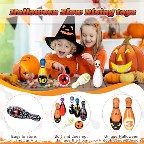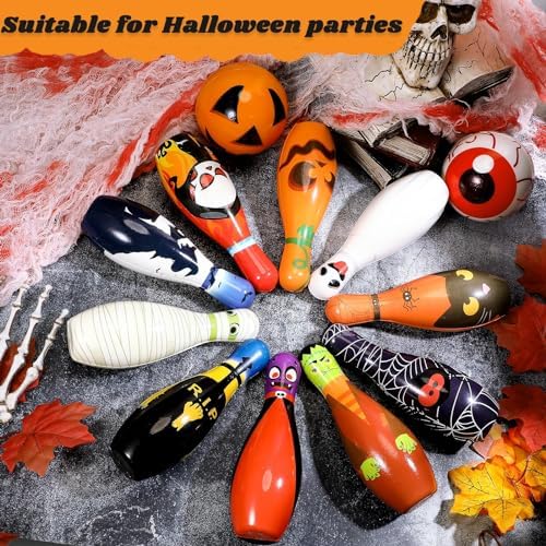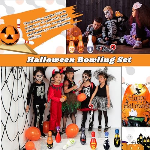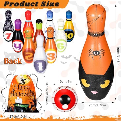 Proper Size for Most Age Groups: the Halloween bowling comes in a convenient size; Pins measuring 7.5 x 2.8 inches/ 19 x 7 cm, and balls measuring 4 x 4 inches/ 10 x 10 cm; This suitable size makes it ideal for most kids, adding a layer of inclusivity to the game