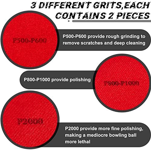 Various usage: bowling ball sanding kit of 2000, 3000, 5000 grits have diverse usage, P2000 provides fine grinding to remove scratches and deep cleaning, and P3000 and P5000D provide deep polishing, multiple functions for to choose whichever need