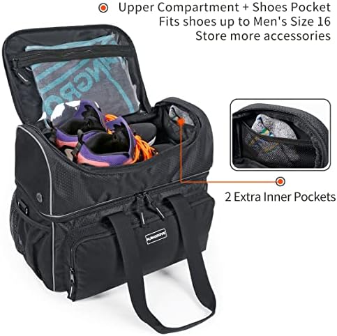 【Carry All Gear In One Bag】MANGROVE Double Bowling Ball Bag is large enough to carry all your bowling accessories, consisting of a main compartment for 2 bowling balls, 1 front pocket, 1 back pocket, 2 side pockets and a dedicated shoes compartment(with ventilation vents) for a pair of shoes (up to men’s size 16) and other gear. Those numerous pockets allow you to easily organize your items like ball cleaner, bottles, towels, socks, phone, wallet, keys, etc.