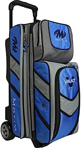 The MOTIV Vault Triple Roller features large 5″ wheels for easy rolling to the lanes. The sturdy lock in handle offers easy gripping and a quick release button on the handle allows the user to release the handle when needed. This roller can hold shoes in it ventilated compartment and has a rugged tote handle for addition use when needed. Premium quality heavy-duty bag combining 1680D and 600D polyester construction Sturdy square-tube telescoping handle with quick-release button on the grip Very stable, smooth rolling, and quiet across hard floors due to oversize 5″ extra-wide urethane whe Huge vented shoe compartment fits up to a US Men’s size 15 shoe High density padding used throughout the Vault bag and extra-thick padding in the ball compartment Four spacious storage pockets for accessories Velcro tie down flaps hold ball securely in place Lockable zippers for the ball compartment (lock sold separately) Warranty: 2-Year Limited Manufacturer’s Warranty SKU: TLMTVG304 Brand: Motiv
