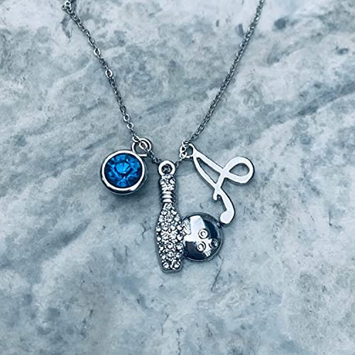 Personalized Bowling Birthstone and Initial Necklace, Custom Bowler Jewelry – Bowling Necklace For Women, Teens & Girls