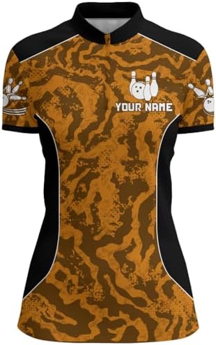PIONAMZIOZ Camo Bowling Polo & Quarter-Zip Shirt for Men and Women Custom Camouflage Bowling Team Shirt Bowlers Jersey QZT130