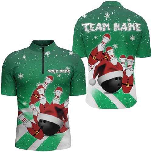 PIONAMZIOZ Custom Christmas Bowling Shirt Men & Women Funny Bowling Jersey Team Bowling Polo & Quarter-Zip Shirt BDT112