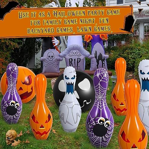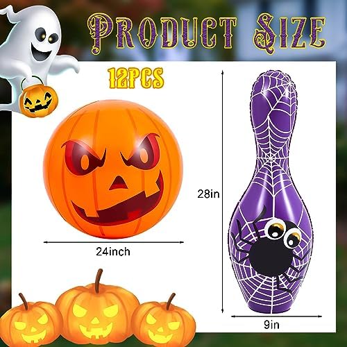 Shappy 12 Pcs Giant Halloween Inflatable Bowling Set Halloween Inflatable Bowling Game Set Giant Inflatable Bowling Set for Halloween Party, Party Supplies, Indoor Outdoor Party(Ghost)