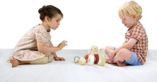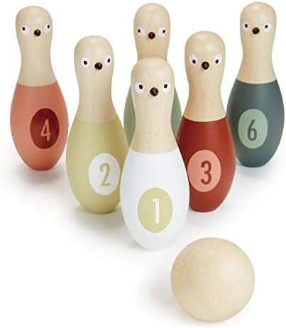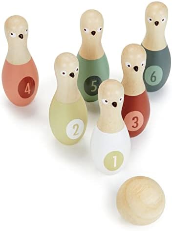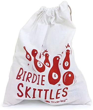 Tender Leaf Toys – Birdie Skittles – Kids Bowling Set – 6 Solid Wood Bowling Pins, Ball and Storage Bag – Fun Physical Learning for Toddler – Develop Hand-Eye Coordination and Numeracy Skills – Age 3+