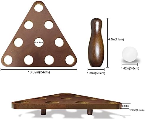 【Package Including 】The shuffleboard bowling pin set include 10 Pcs bowling pins of 4.3” tall, 1 resin bowling ball measuring 1.77” , 1 triangular pinsetter and 1 mesh carrying bag.