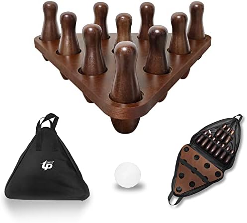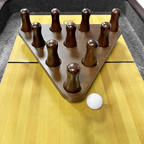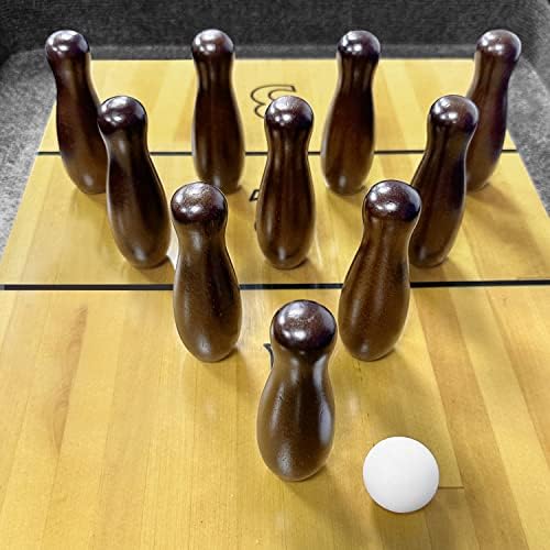 TORPSPORTS Shuffleboard Bowling Pin Set,Portable Shuffleboard Table Bowling Pin Set Include Hardwood Bowling Pins Durable Triangula,Pinsetter Resin Bowling Ball Suitable Shuffleboard Bowling Game