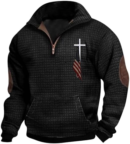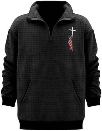 UNSERE Mens Quarter Zipper Pullover Fashion Stand-Up Simple Solid Cross & Flag Prined Sweatshirt Autumn Casual Baggy Tops