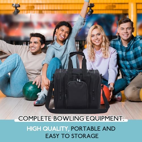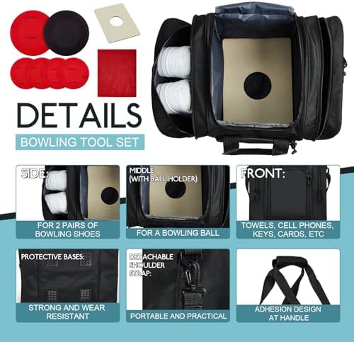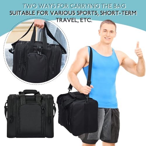 Bowling Ball Bag: the bowling tote bag features a large capacity to store your bowling accessories, is designed with a large compartment in the middle to hold single ball, 2 side pockets for shoes, and a front compartment for your gloves, towels and other sports equipment