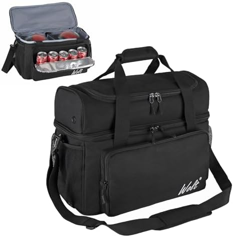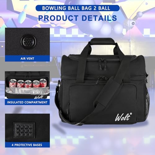 [LARGE CAPACITY]The 2 ball bowling bag is large enough to carry all your bowling gear.Multiple pockets are designed to allow you to store your equipment all in one bag. The main compartment of bowling bag can hold 2 bowling balls. The bowling accessories bag has a front insulated pocket, It can store 5 cans of drinks, and the pocket is convenient for you to clean. Other additional pockets allow you to easily organize your items like water bottles,socks, shoes, wallets, keys, etc.