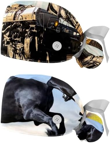 Scrub Cap made of polyester, cotton sweat towel, and plastic buttons. Comes in a pack of 2. Perfect for work caps, tie back hats, bouffant hats, and working hats